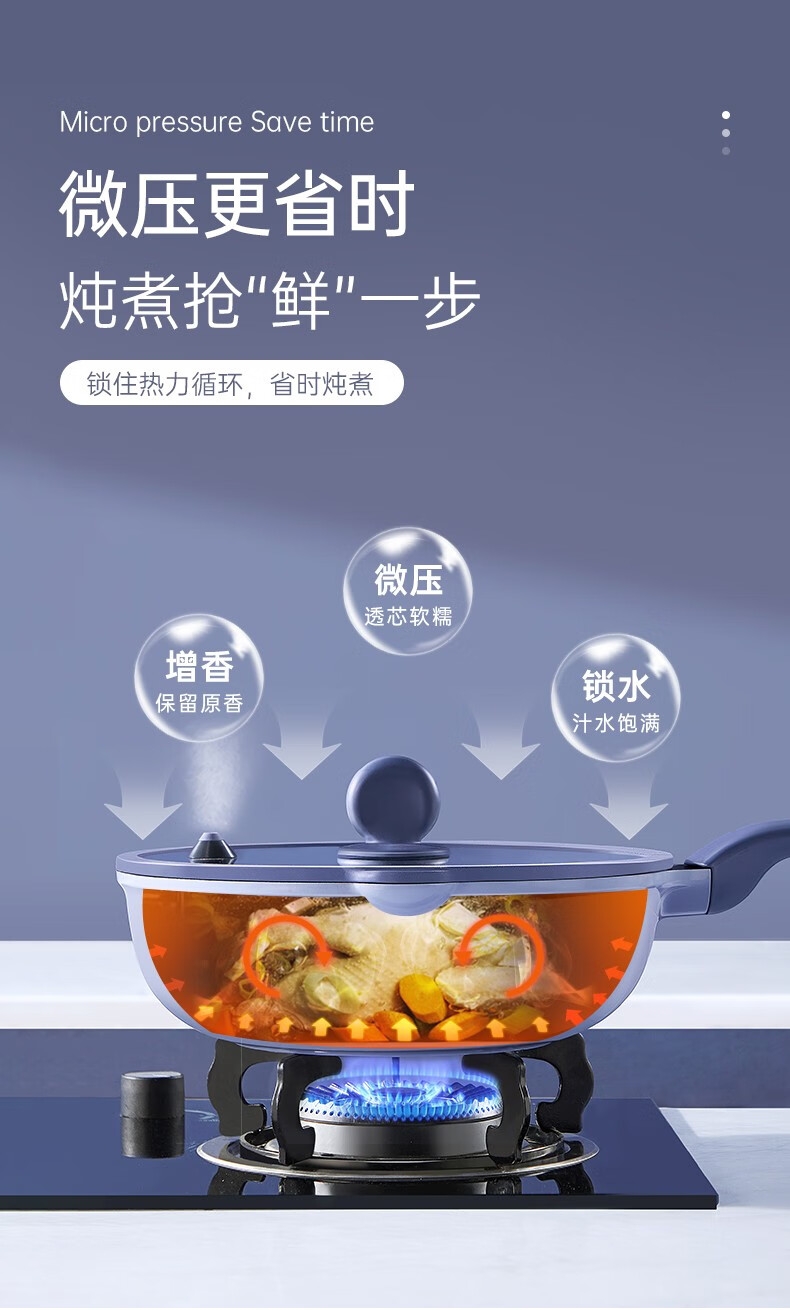 2.烹饪炒煎炖煮都不粘,匀热控油烟下厨清新更健康