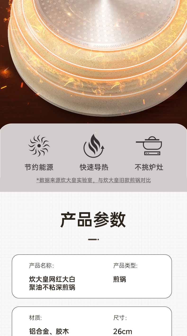 炊大皇网红大白聚油不粘深煎锅 26cmJG26DB-H