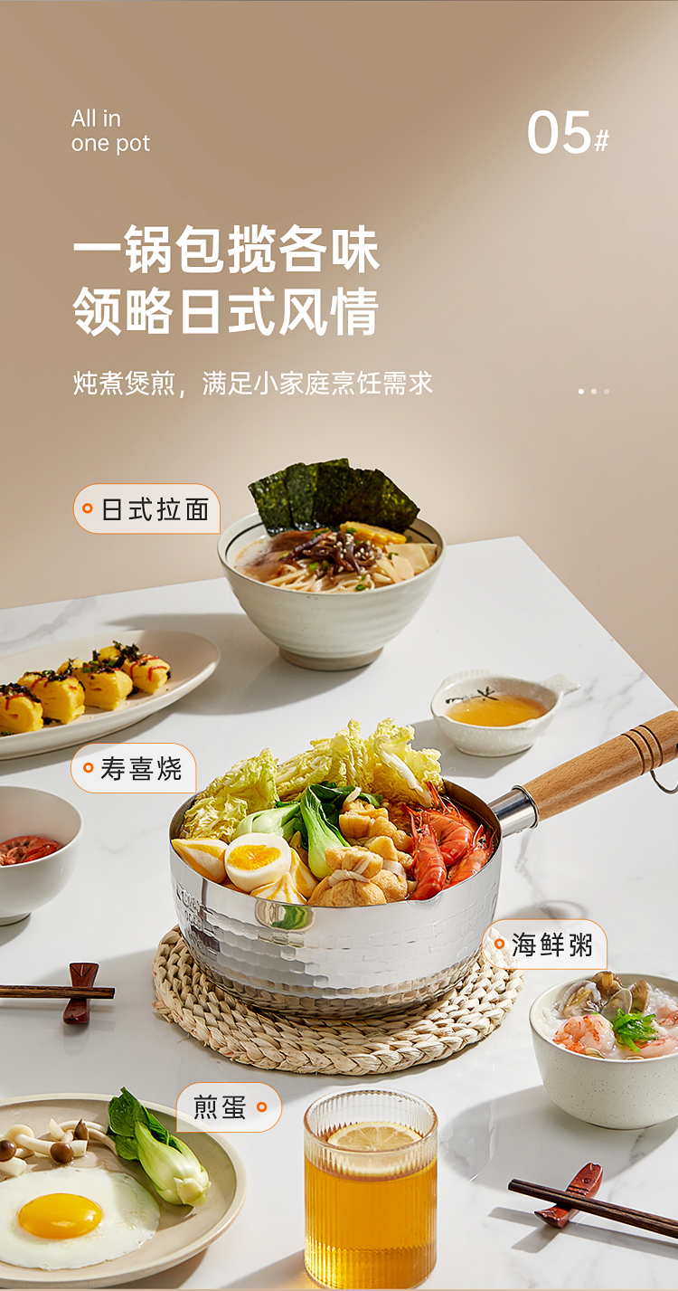 1、专属于你的日式深夜食堂,雪平锅烹调美味,充盈幸福 把日式风味,带进你的家里