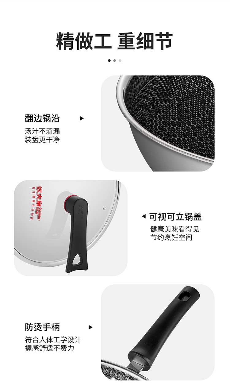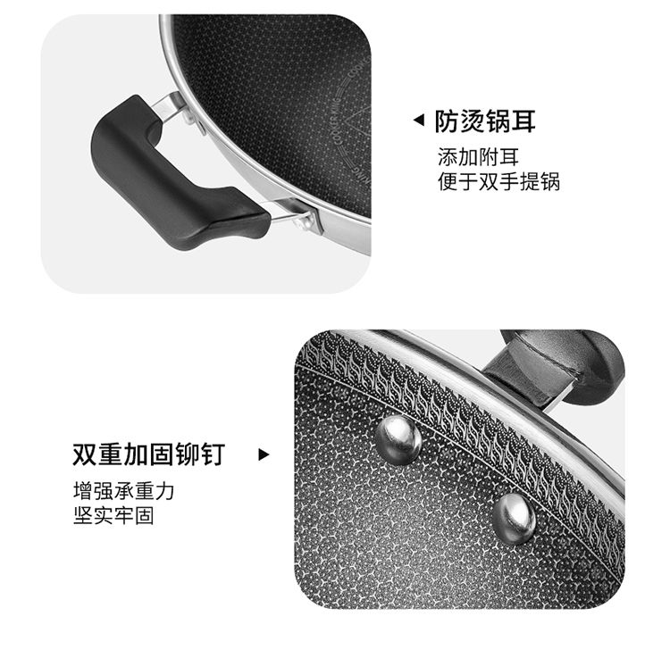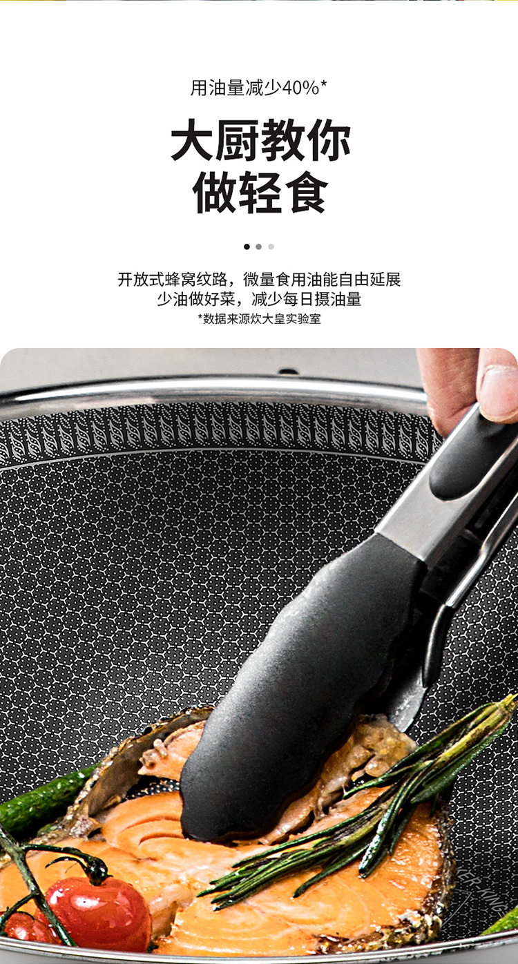 3、内不粘锅 外节能聚火锅内全面屏蜂窝纹,物理不粘