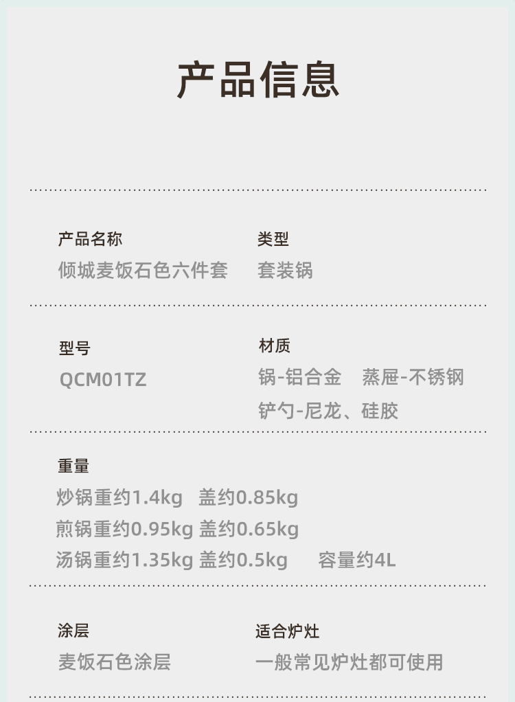 炊大皇倾城麦饭石色六件套QCM01TZ