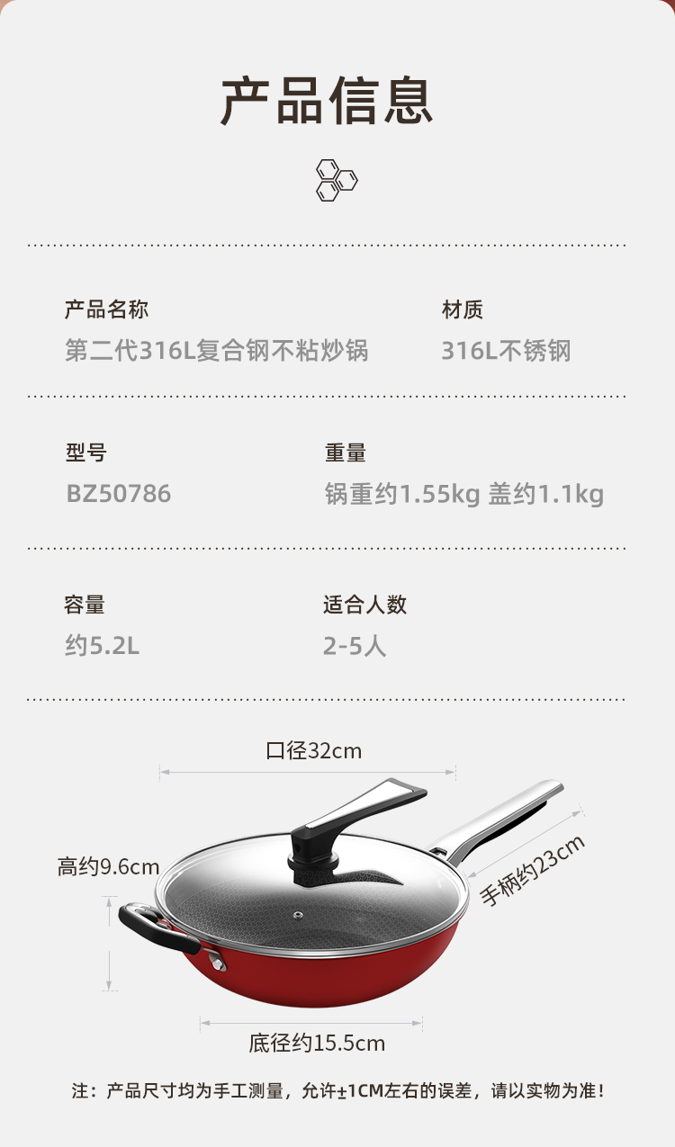 1.新升级更轻更耐用的不粘锅.喜欢不锈钢炒锅的耐磨耐用性,但是又觉得太重端不动的女性,就选这口锅