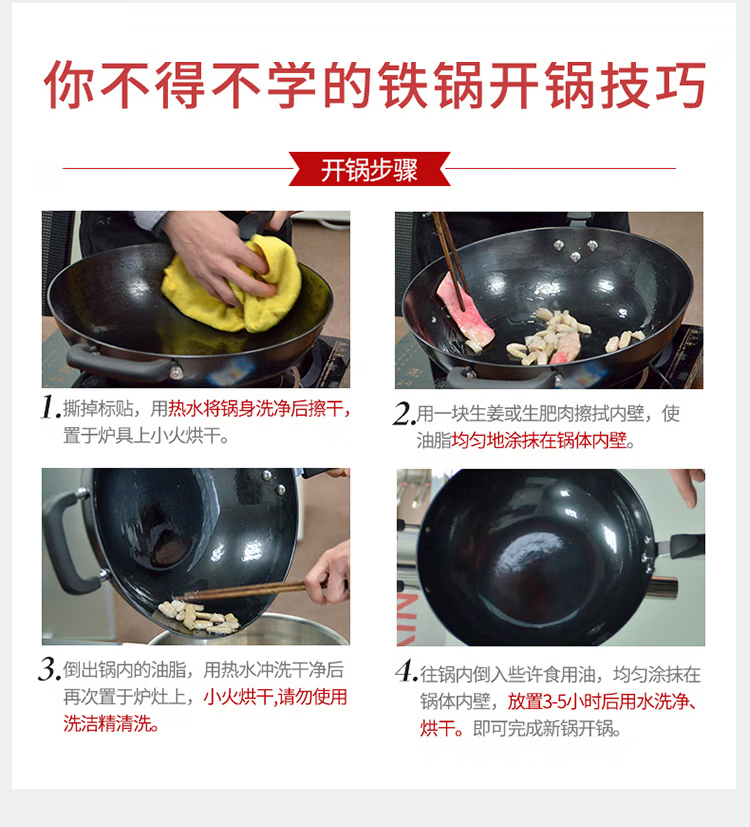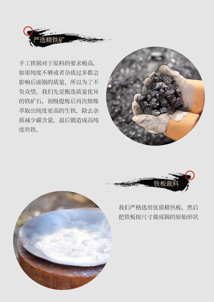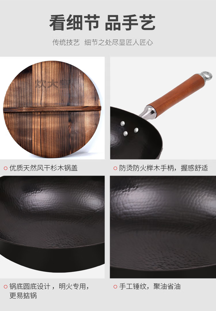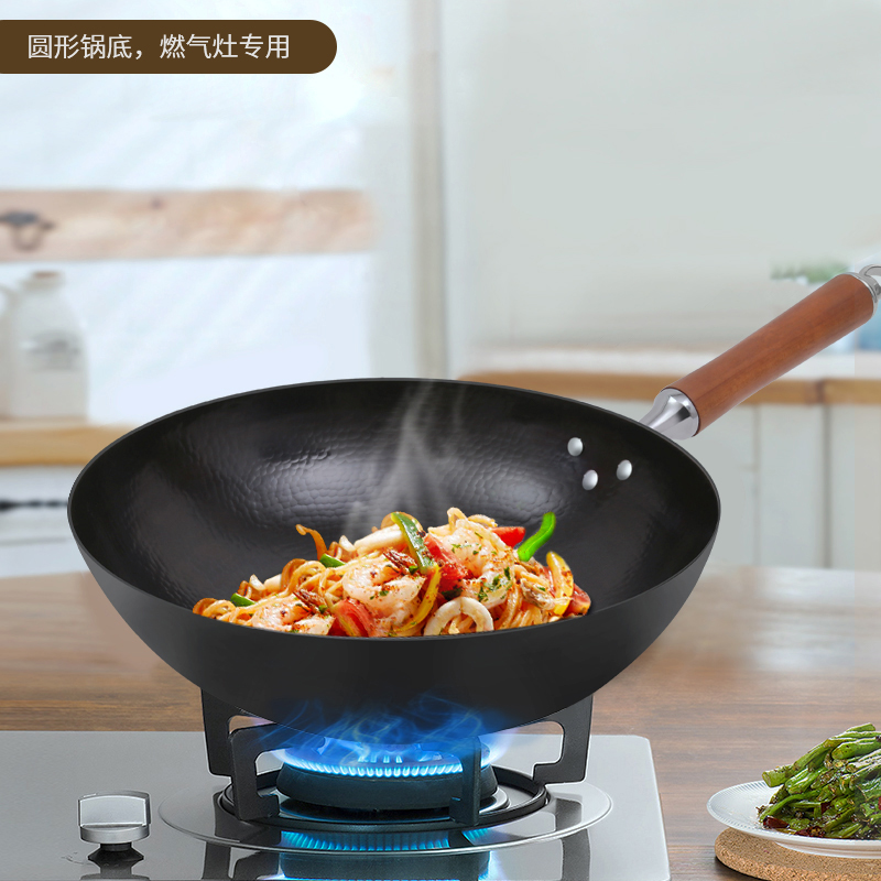 2.手工锻打,窒化铁技术处理不易锈,适用炉灶:圆底,明火专用