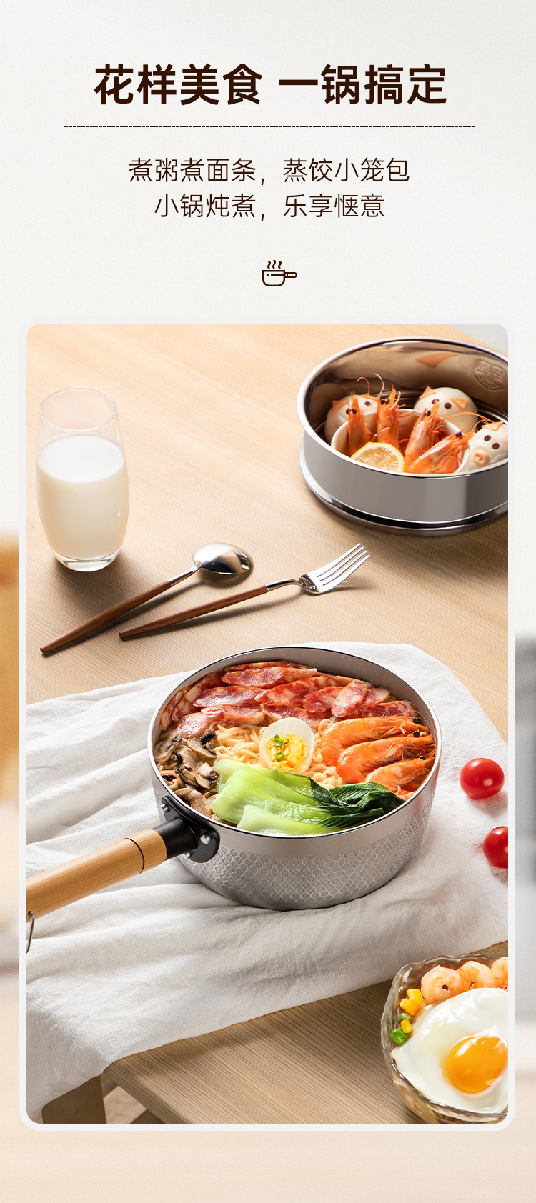 煮粥煮面条,蒸饺小笼包小锅炖煮,乐享惬意