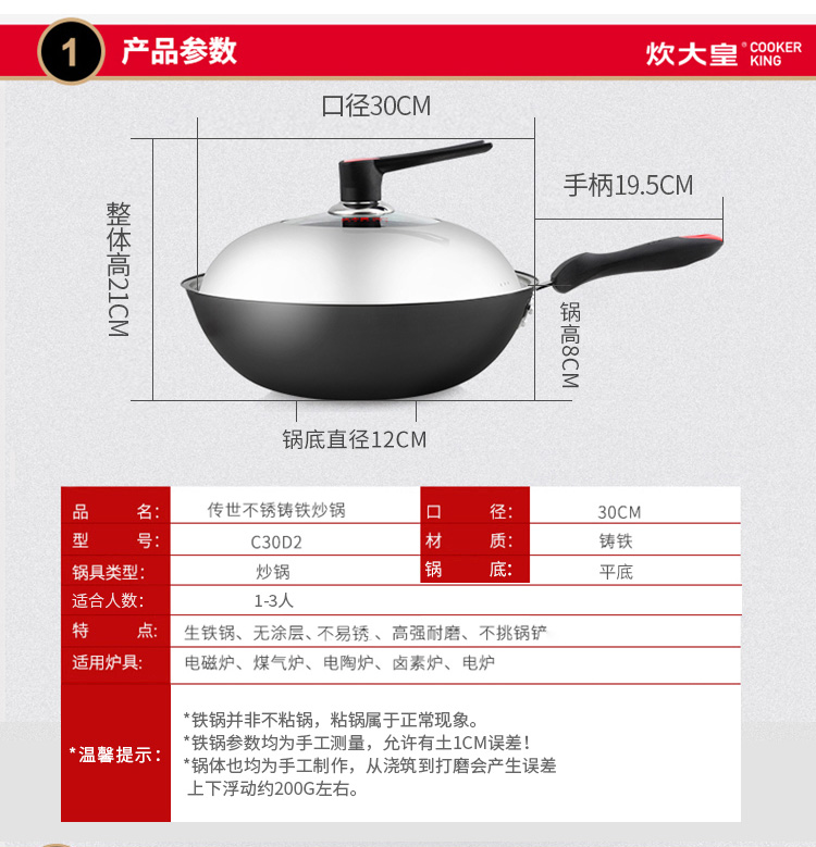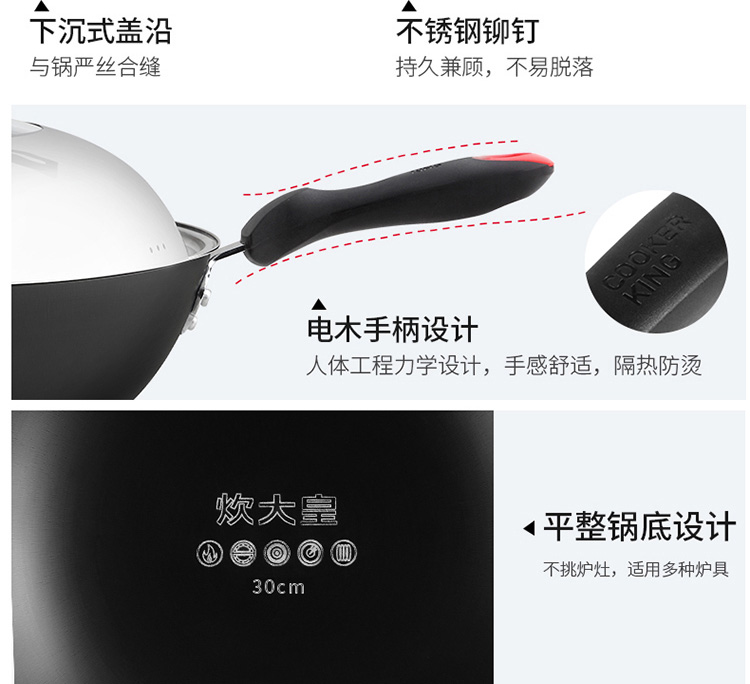 炊大皇传世不锈铸铁炒锅C30D2