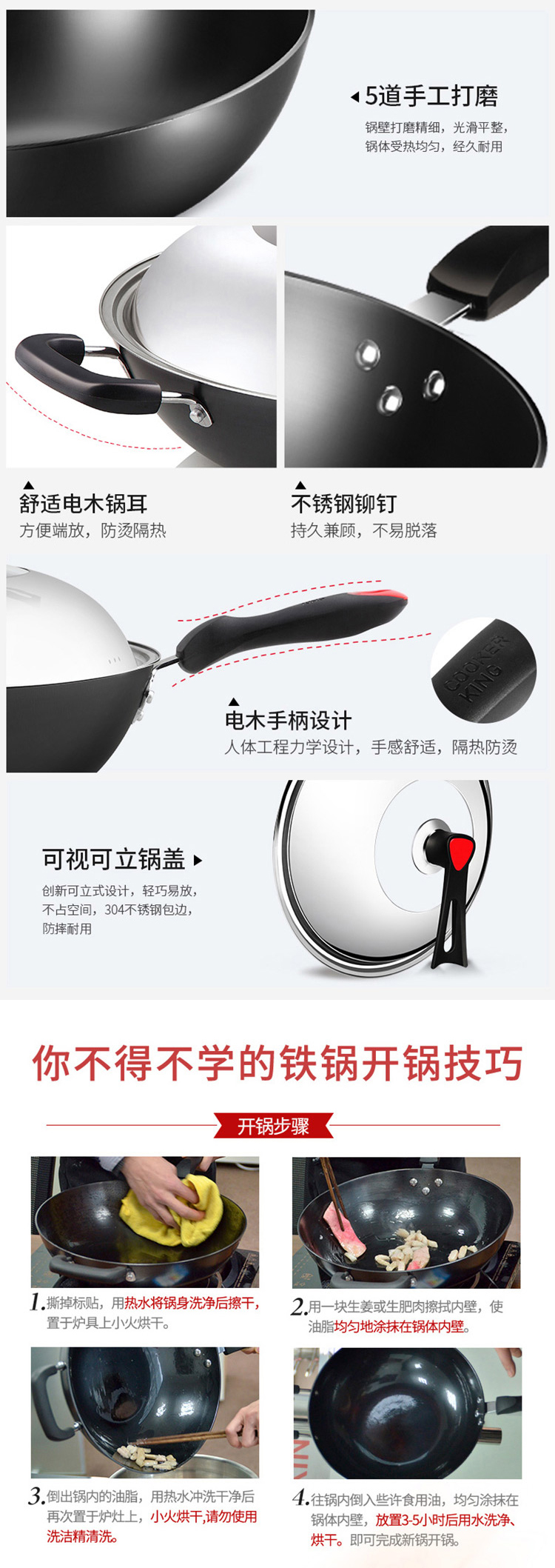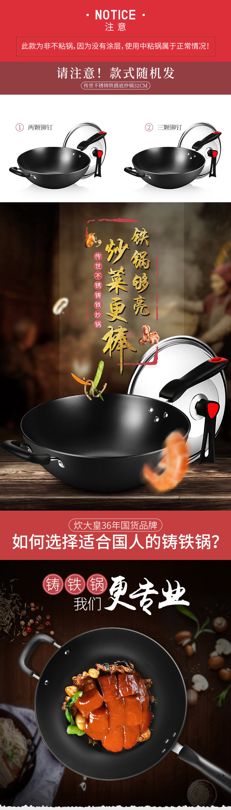 炊大皇传世不锈铸铁炒锅C34D2