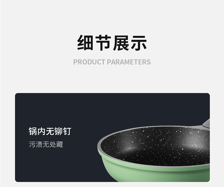 煎烙少油烟 拒绝厨房油烟带来的危害3、锅内无铆钉,污渍无处藏;