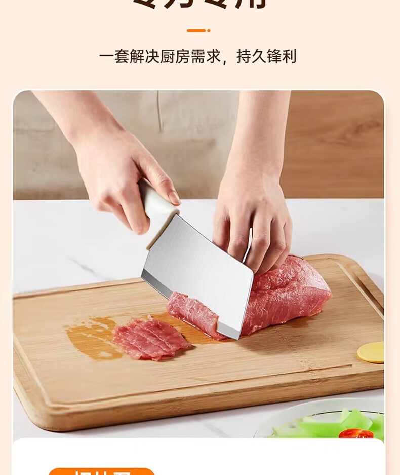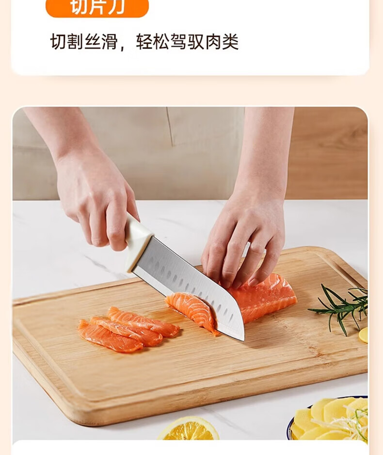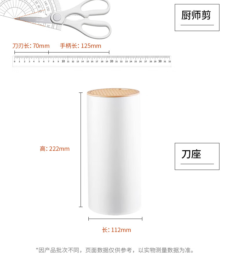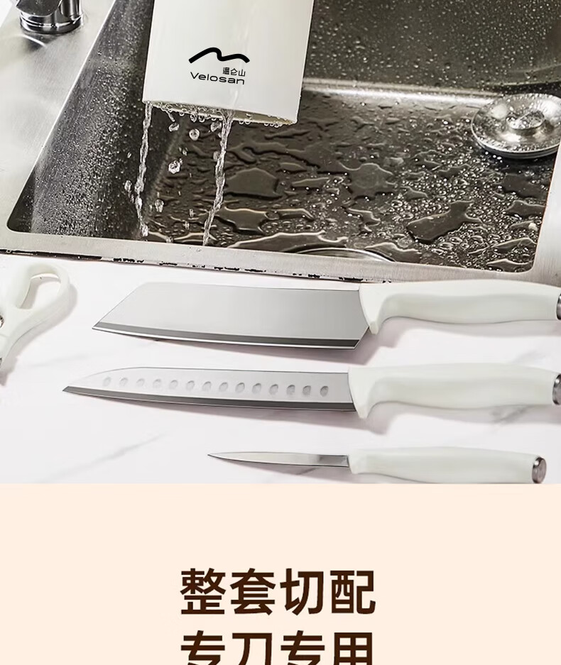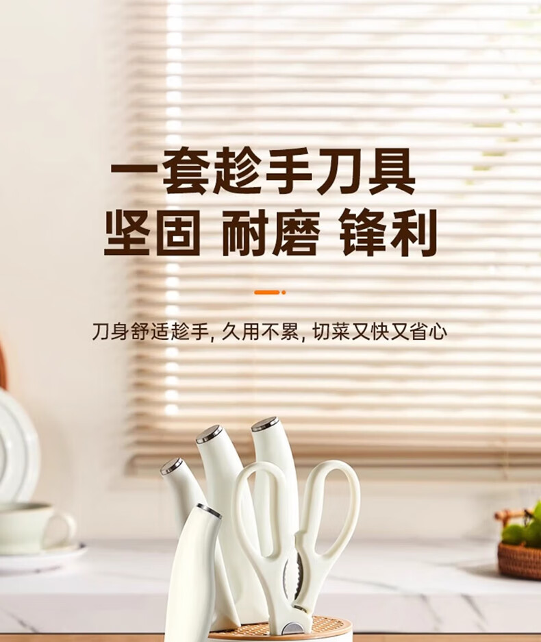 【材质】不锈钢+PP 【规格】 切片刀、厨师刀、水果刀、剪刀、收纳底座