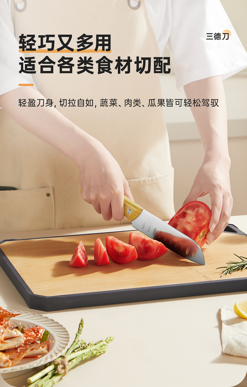 2、精湛工艺打磨,提升刀刃锋利度手起刀落,瞬间片开食材,紧锁食材汁水。