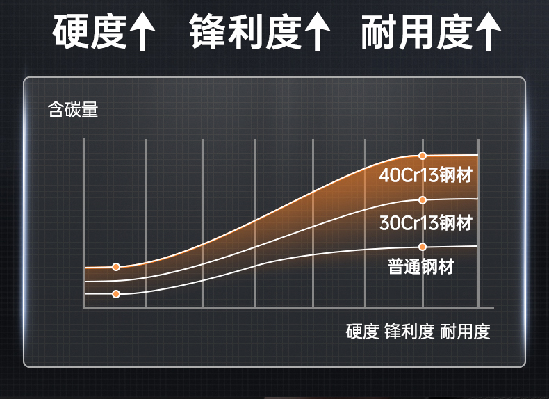 材质:手柄:430铸件+碳化小叶相思木/刀刃:40Cr13