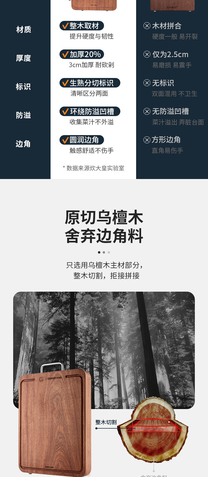 3、3cm加厚实木不震手 不伤刀 不易裂