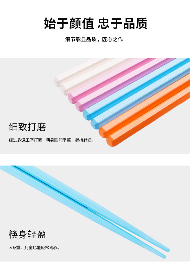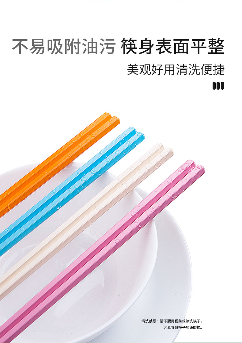 筷身表面平整,不易吸附油污,美观好用清洗便捷。