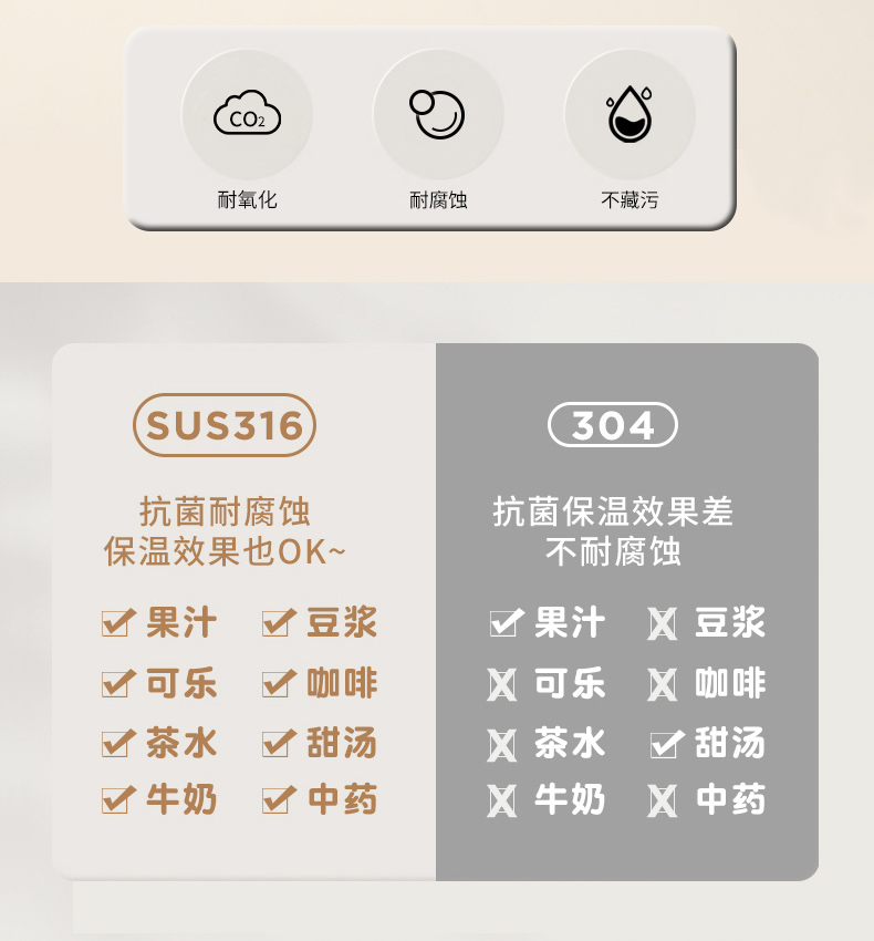 材质:杯体:SUS316 奥氏体型不锈钢(食品接触用)