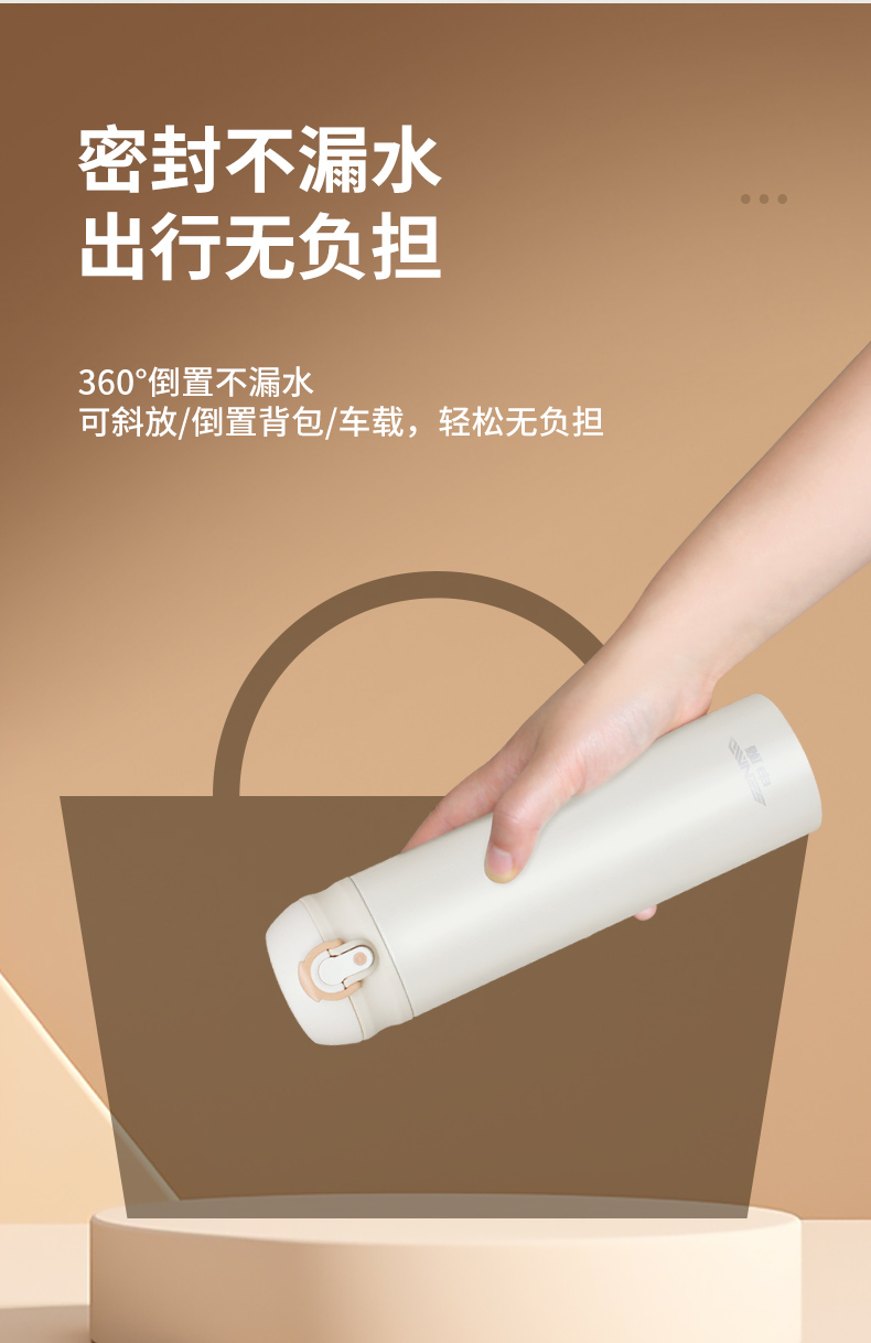 360°旋转不滴漏,可放心存置于背包、车内。