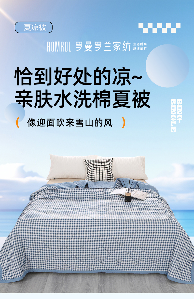 罗曼罗兰良品超声波夏被-蓝小格