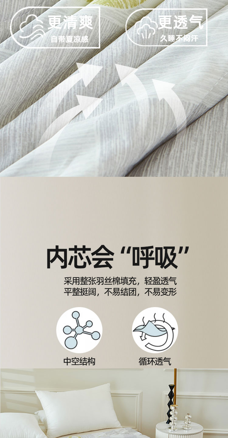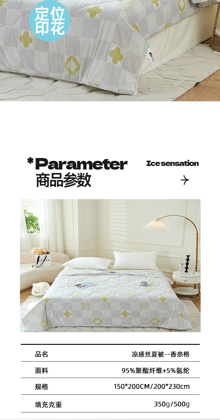 甄选面料,采用凉感丝高科技,触感冰凉,柔软亲肤,由内而外温柔包裹,舒适透气,告别夏日黏腻,遇见惬意睡眠