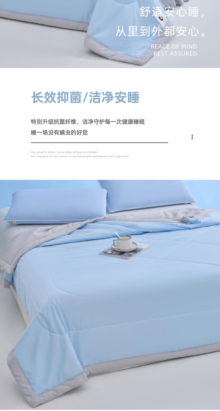 从材质到工艺,从健康到舒适,这款夏被以科技赋能睡眠,让您每晚在清新洁净中安然入梦,尽享整夏清凉