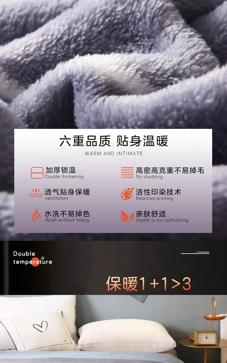 保暖舒适贴身,精选优质雪貂绒面料,加厚保暖,舒适亲肤。柔软细腻透气。雪貂绒手感柔软、透气性好,不闷热。环保健康安全,采用环保印染工艺,色牢度高,不褪色,贴身健康。