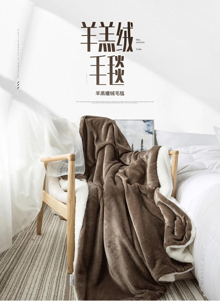 A版法莱绒,B版羊羔绒毛毯,独特的AB版设计,层次更加丰富,让生活与众不同,原生态健康睡眠体验。不易褪色,不易掉毛,不易起球,无静电。手感柔软舒适、质感丰厚,悬垂感强,柔软保暖,环保健康,细致绗缝,精密有序,细节彰显品质。