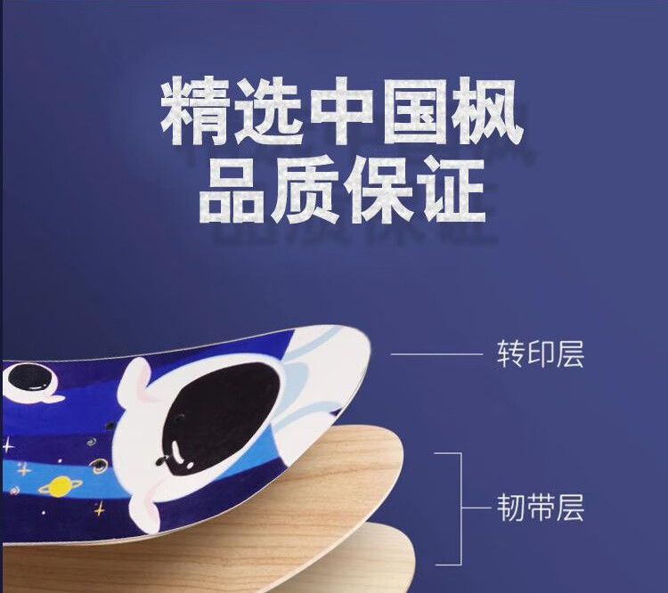 产品材质:七层中国枫木板材+闪光PU静音轮