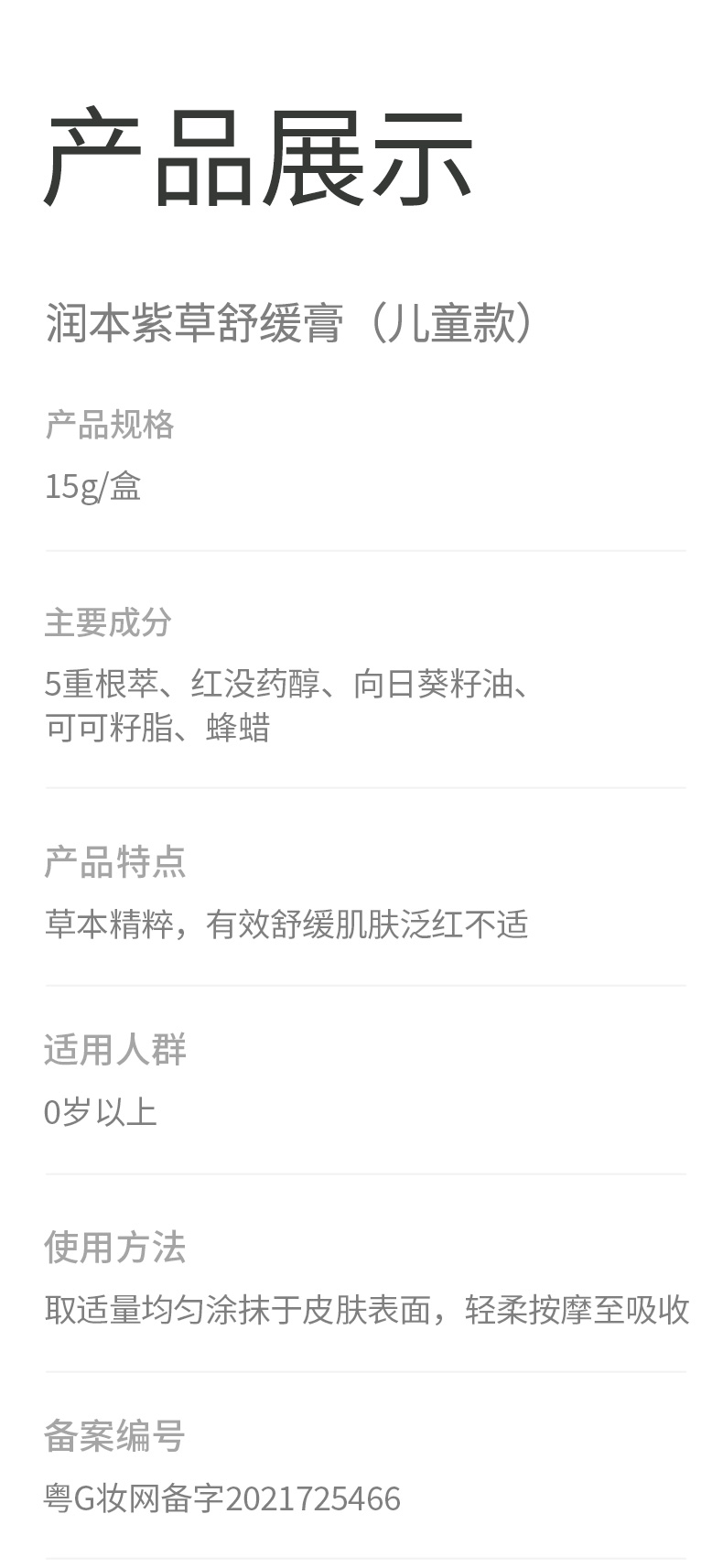 润本紫草舒缓膏15g(儿童款)