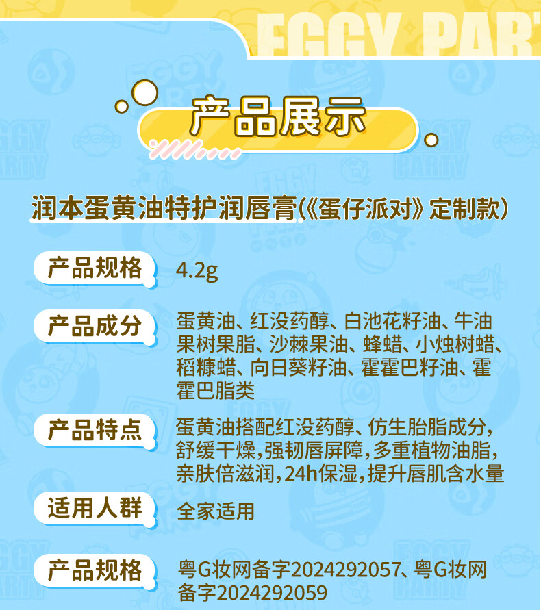 润本蛋黄油特护润唇膏(芝芝芒芒)4.2g