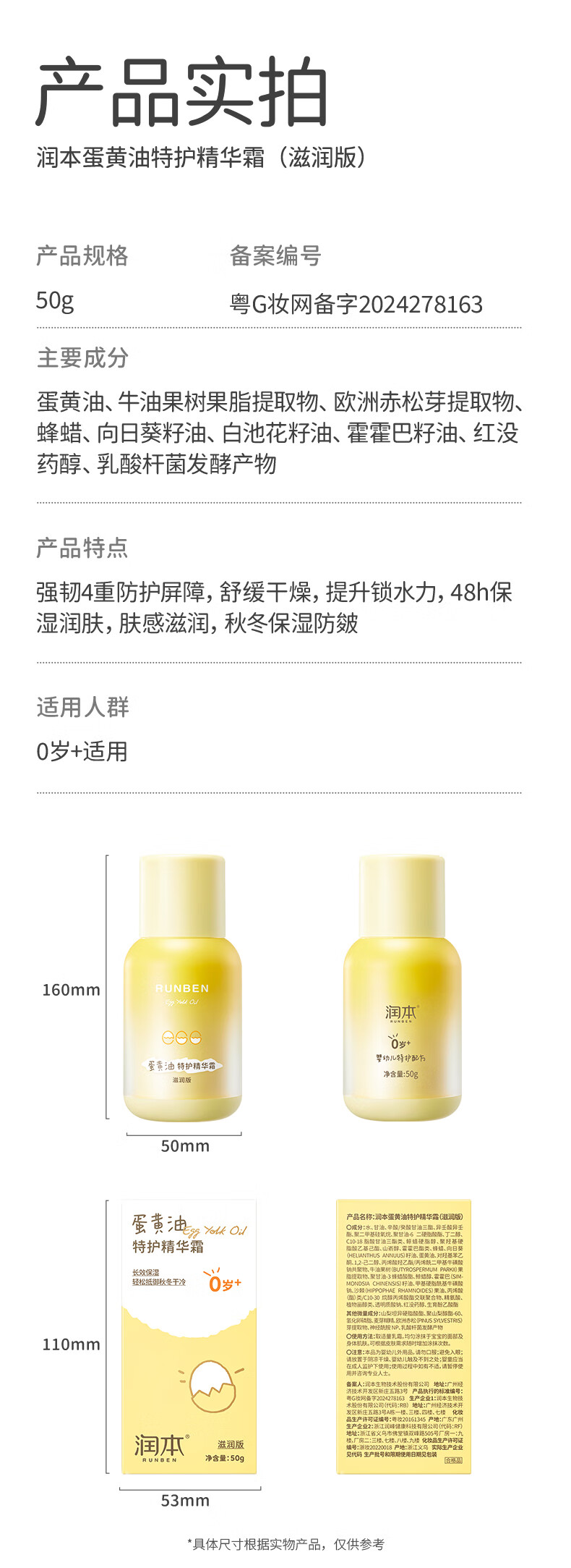 润本蛋黄油特护精华霜(滋润版)50g-2024