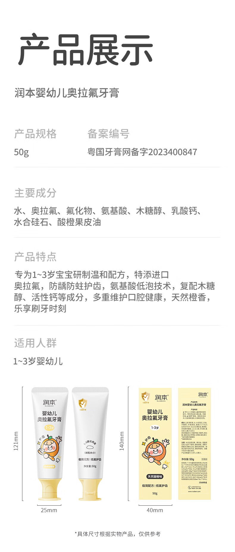 润本婴幼儿奥拉氟牙膏50g-2023版