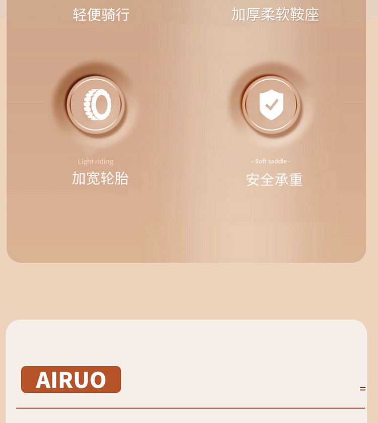车身采用高碳钢车架,稳固安全;加宽发泡实心轮胎 ,减震防滑,适应各种路况路面;三角结构,稳固防止侧翻;2挡可调节座椅,适应宝宝不同年龄段使用;磨砂圆润把手,防撞车头,安全升级;人体工学设计座椅,骑乘舒适。