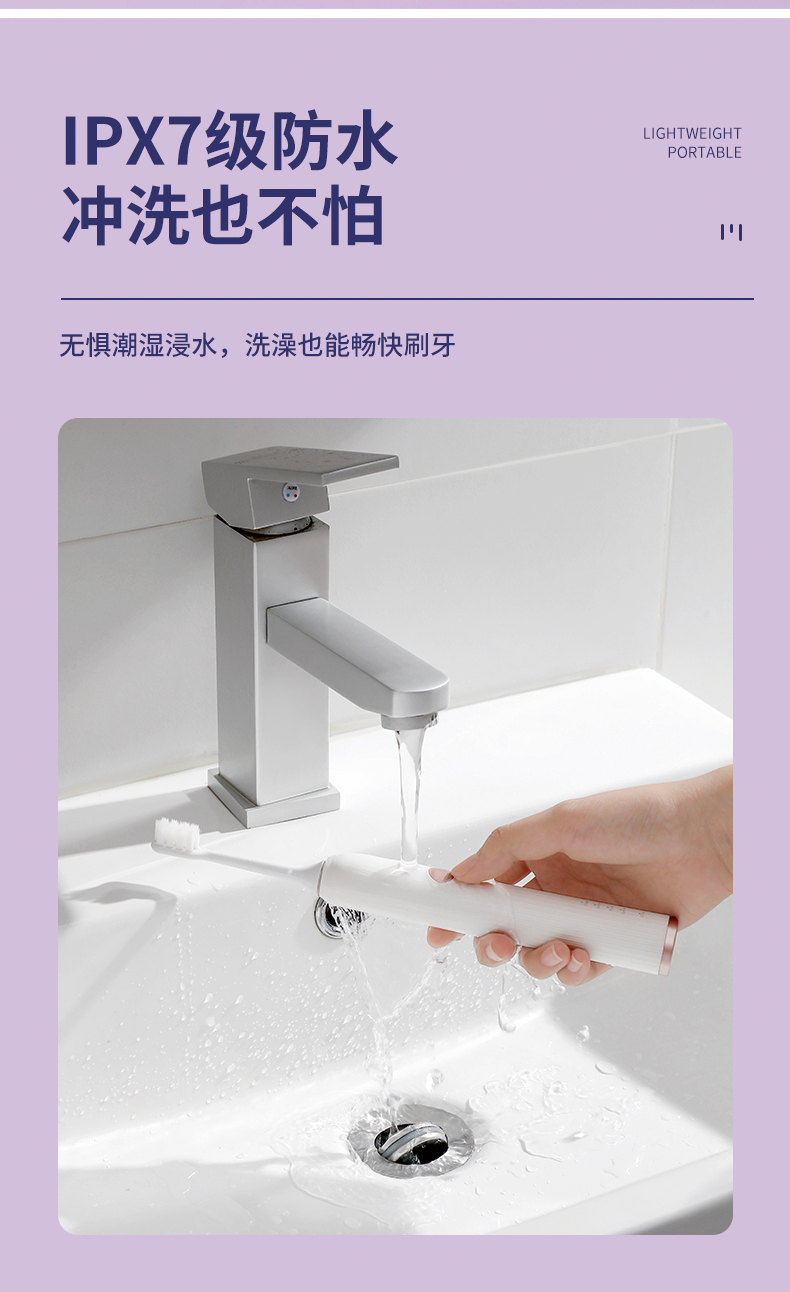 2、长按2秒切换,防水,清洁 美白 抛光 护龈有效缓解牙龈出血 快速净白、美白零死角清洁