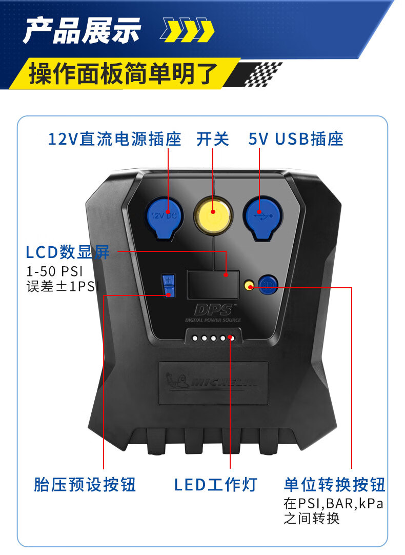 米其林大功率充气泵预设胎压(方形款)12266
