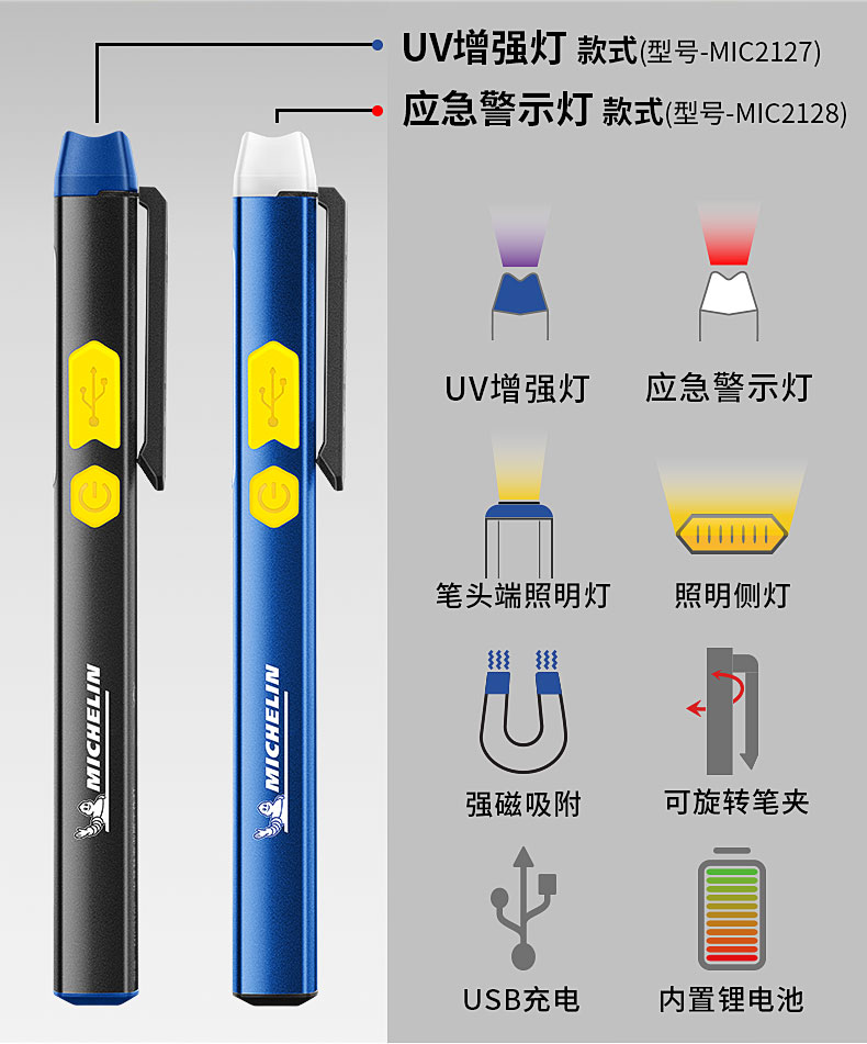• 米其林笔形锂电池工作灯红灯警示版(专业级)MIC2128