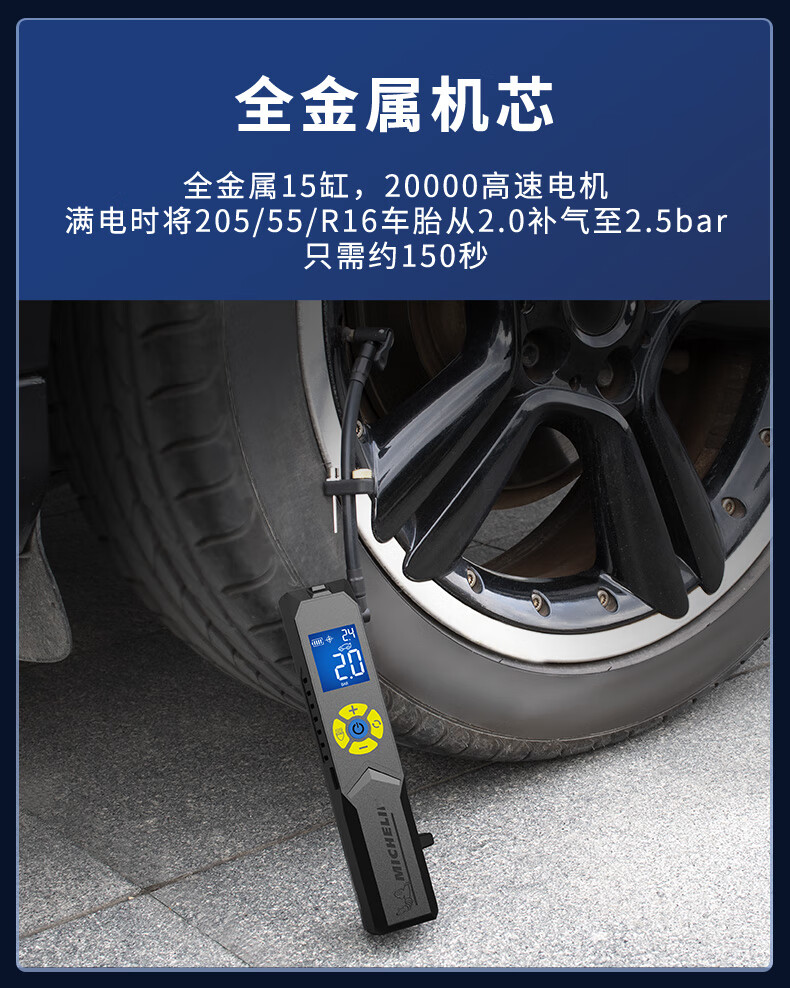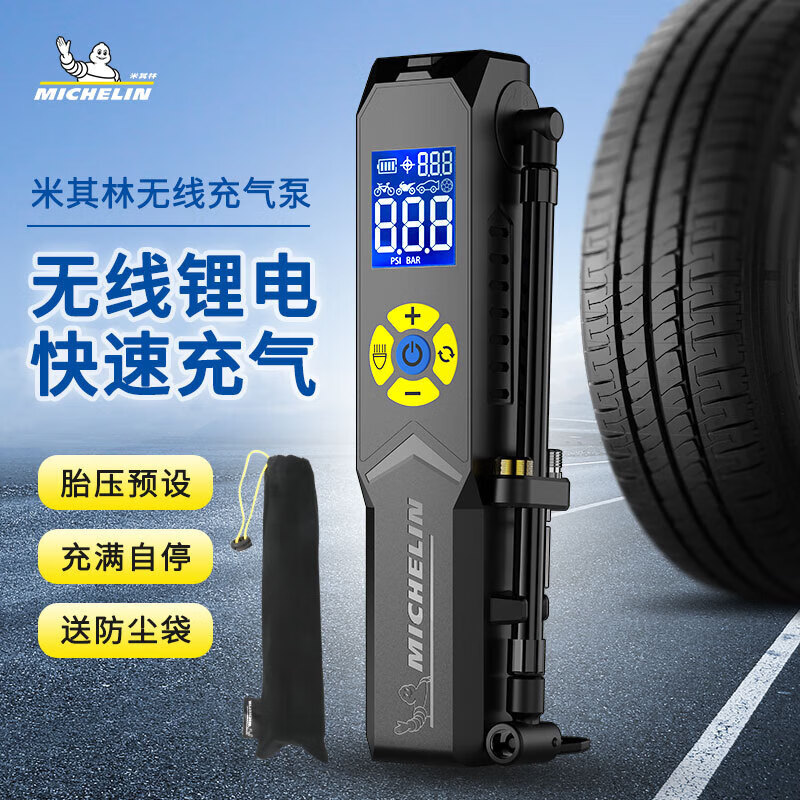 米其林数显便携升级款无线锂电充气泵 可预设胎压