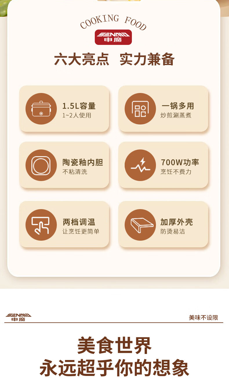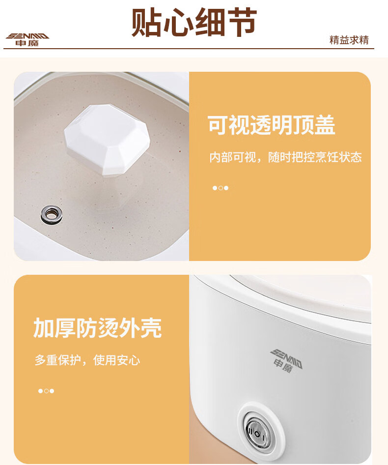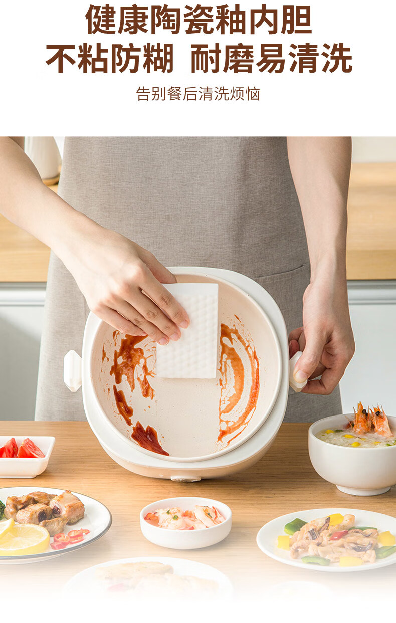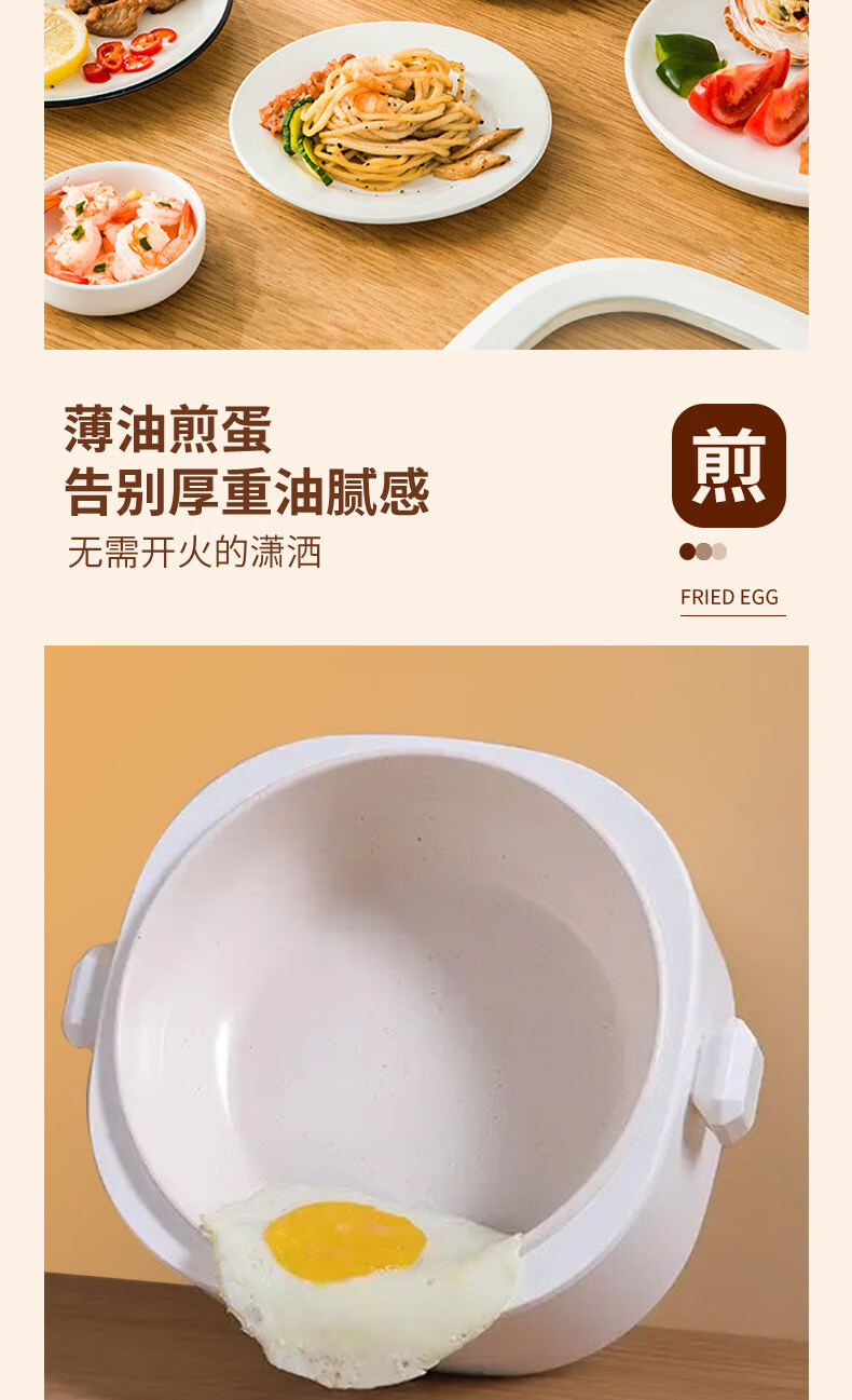 纳米陶瓷釉内胆光滑细腻,一抹即净煎炒不糊底;