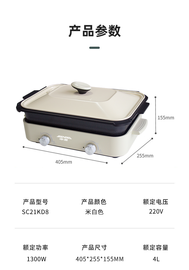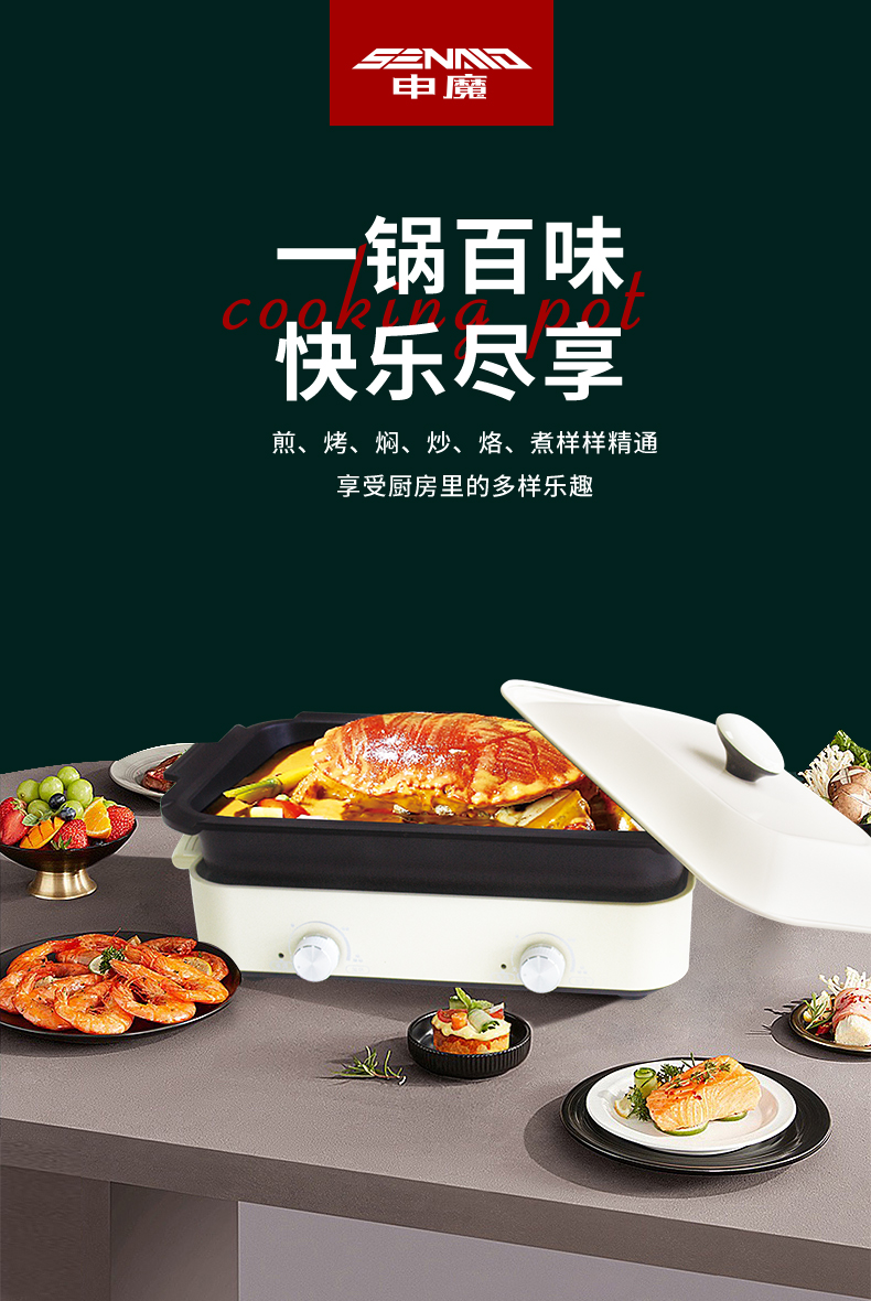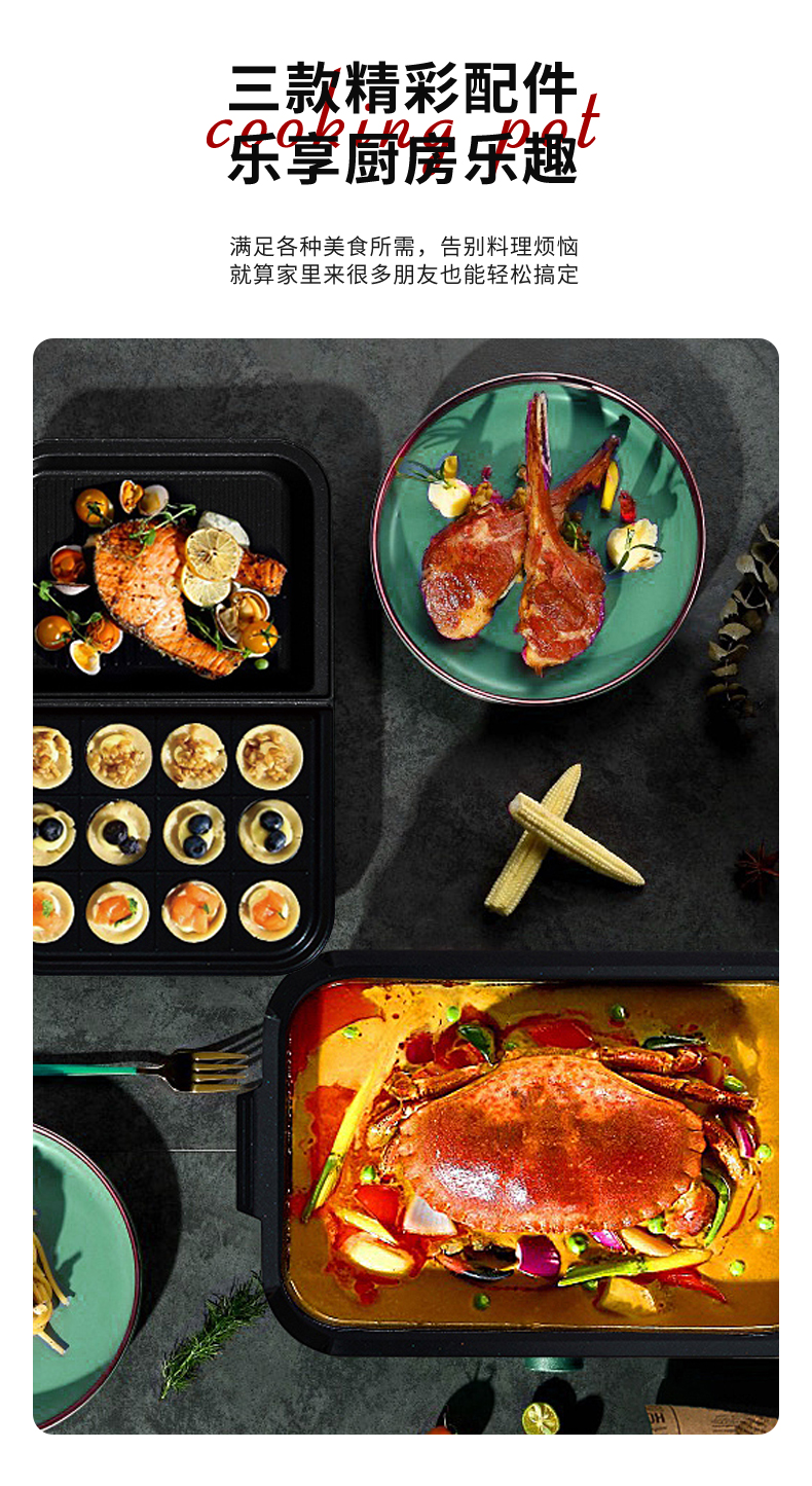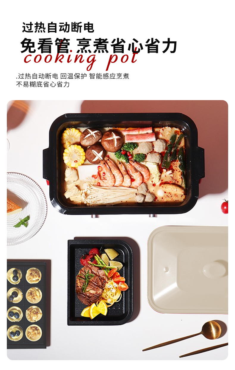 一机多用:涮、焖、煮、焗、煎、烤、炒烙。