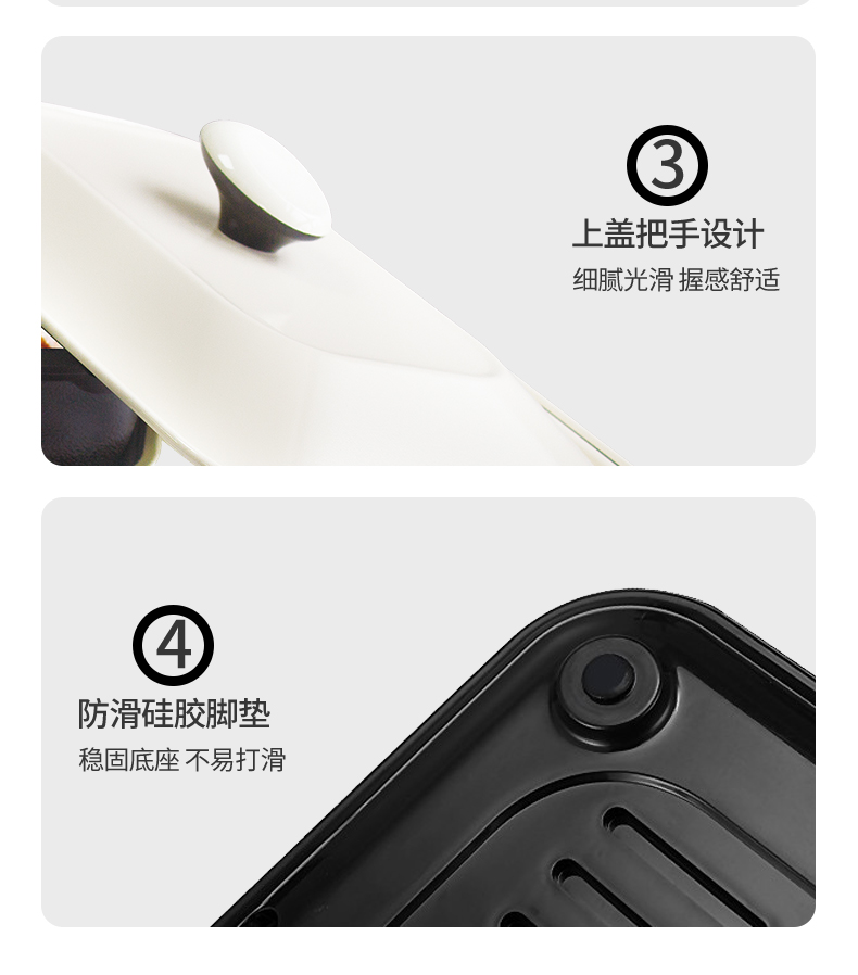 配置:深底汤锅*1,章鱼小丸子烤盘*1,条纹烤盘*1