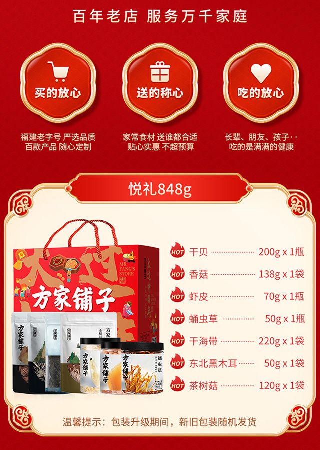 • 【方家铺子】悦礼海产菌菇干货礼盒848g/礼盒装