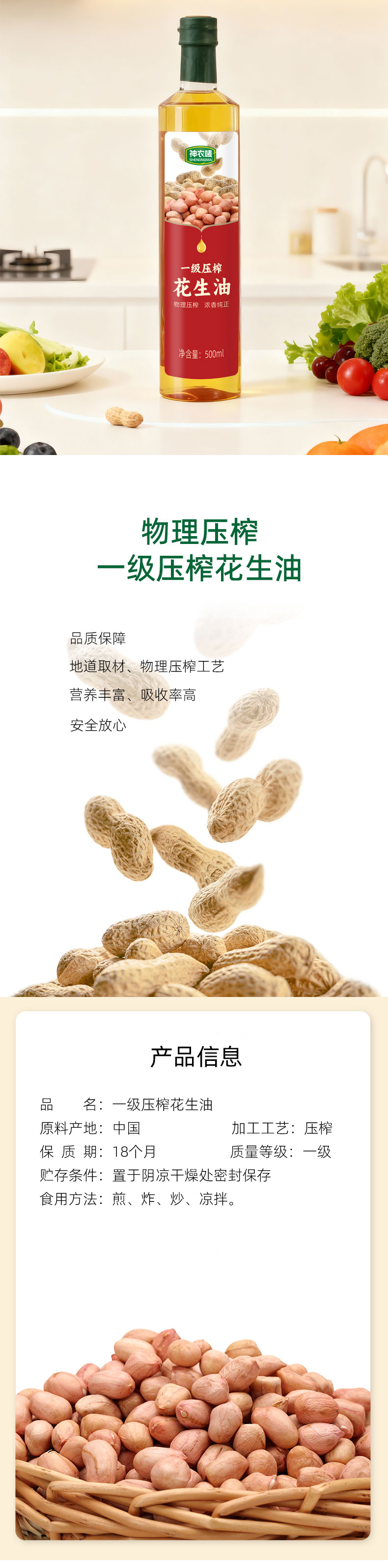 3.神农唛一级压榨花生油500ML