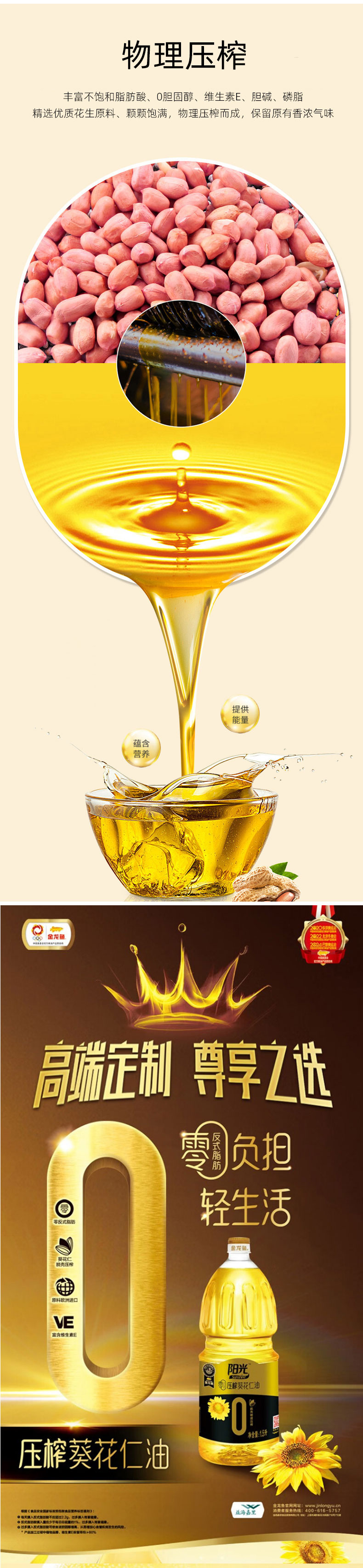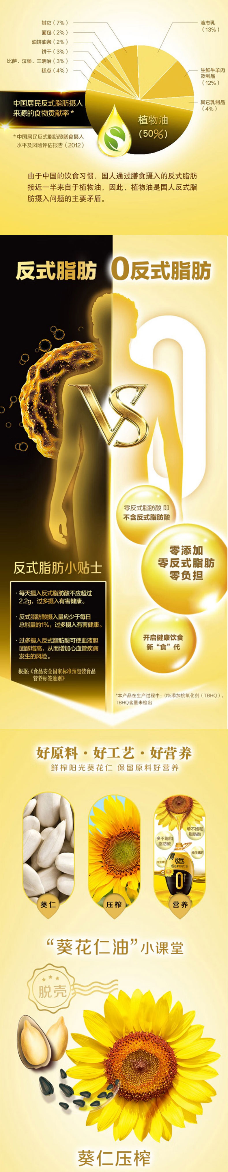 1.金龙鱼阳光零反式脂肪压榨葵花仁油1.5L