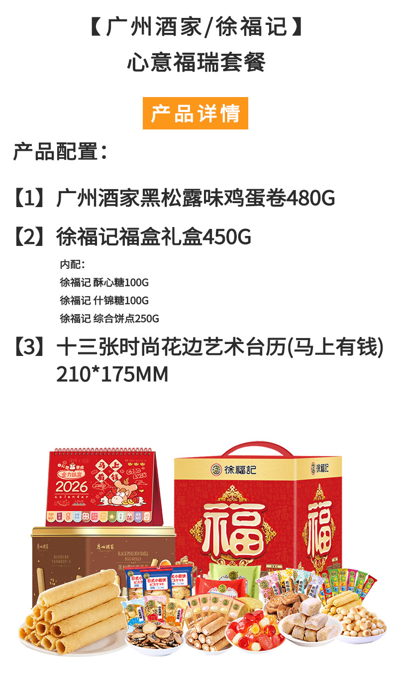 • 广州酒家/徐福记-蛋卷糕点糖果心意福瑞组合