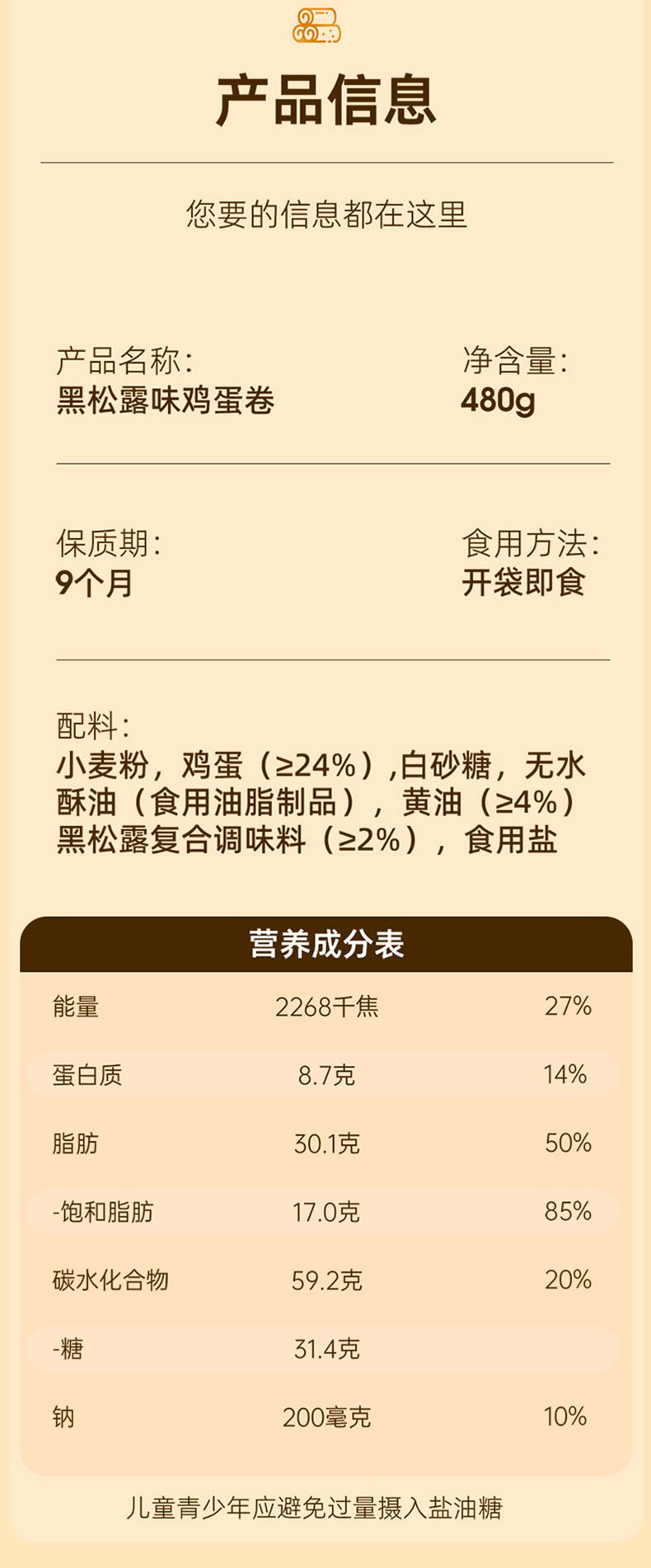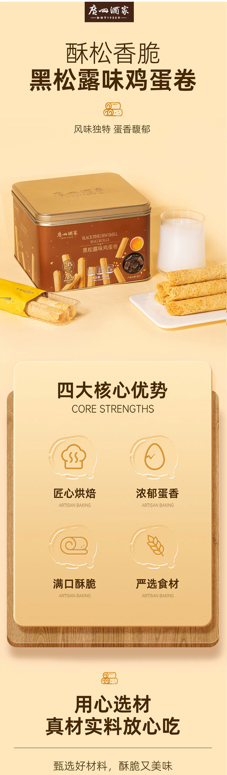 1.广州酒家黑松露味鸡蛋卷480g