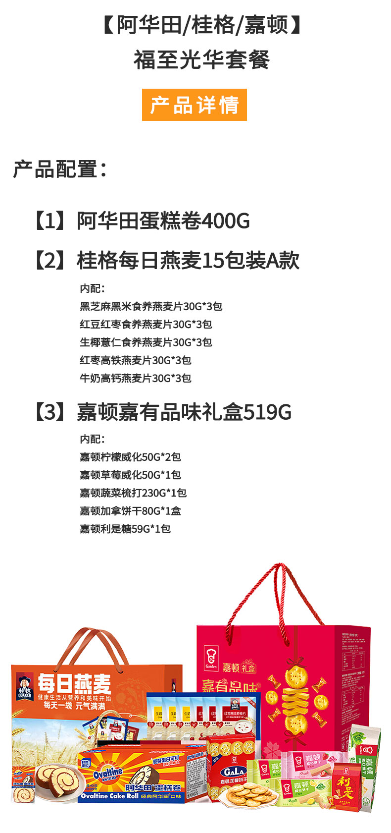 阿华田/桂格/嘉顿-饼干麦片蛋糕卷福至光华组合