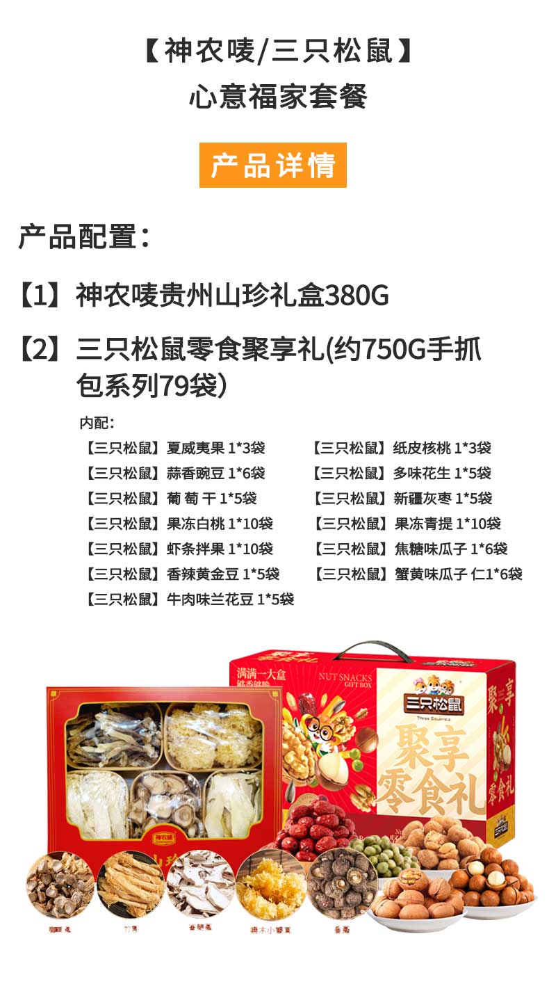 神农唛/三只松鼠-山珍干货坚果零食心意福家组合1130g