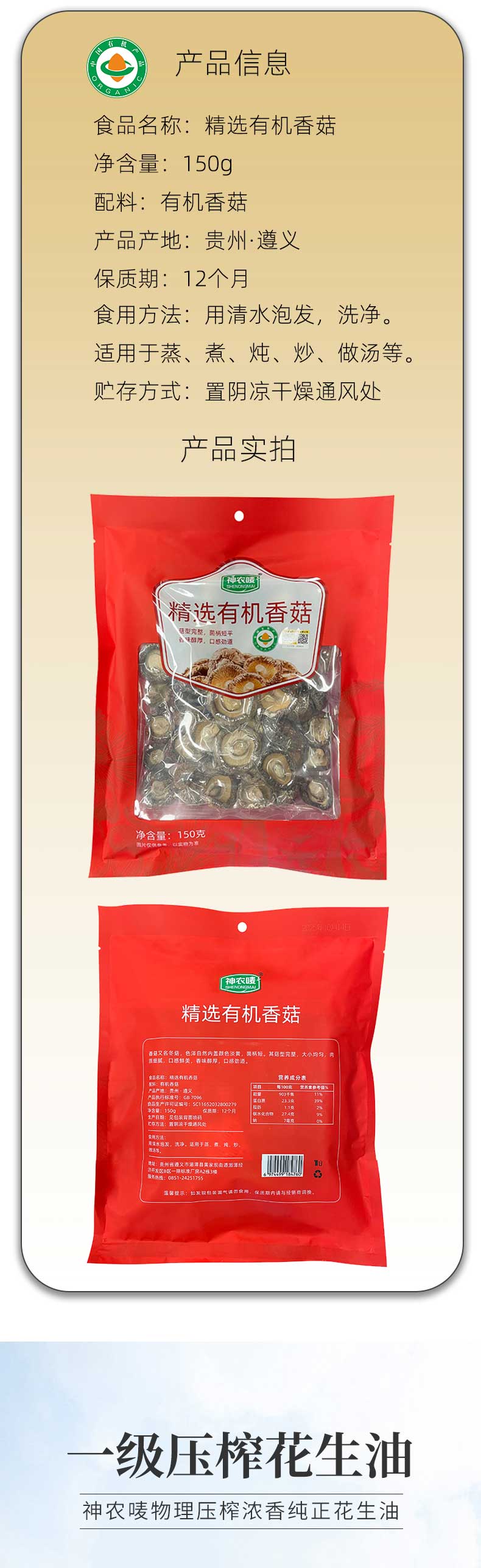 2.神农唛精选有机香菇150g