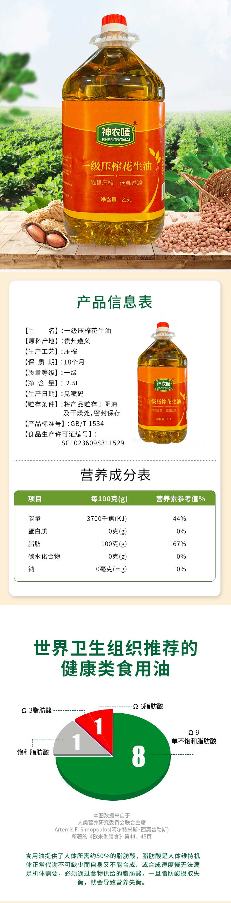1.神农唛一级压榨花生油2.5L