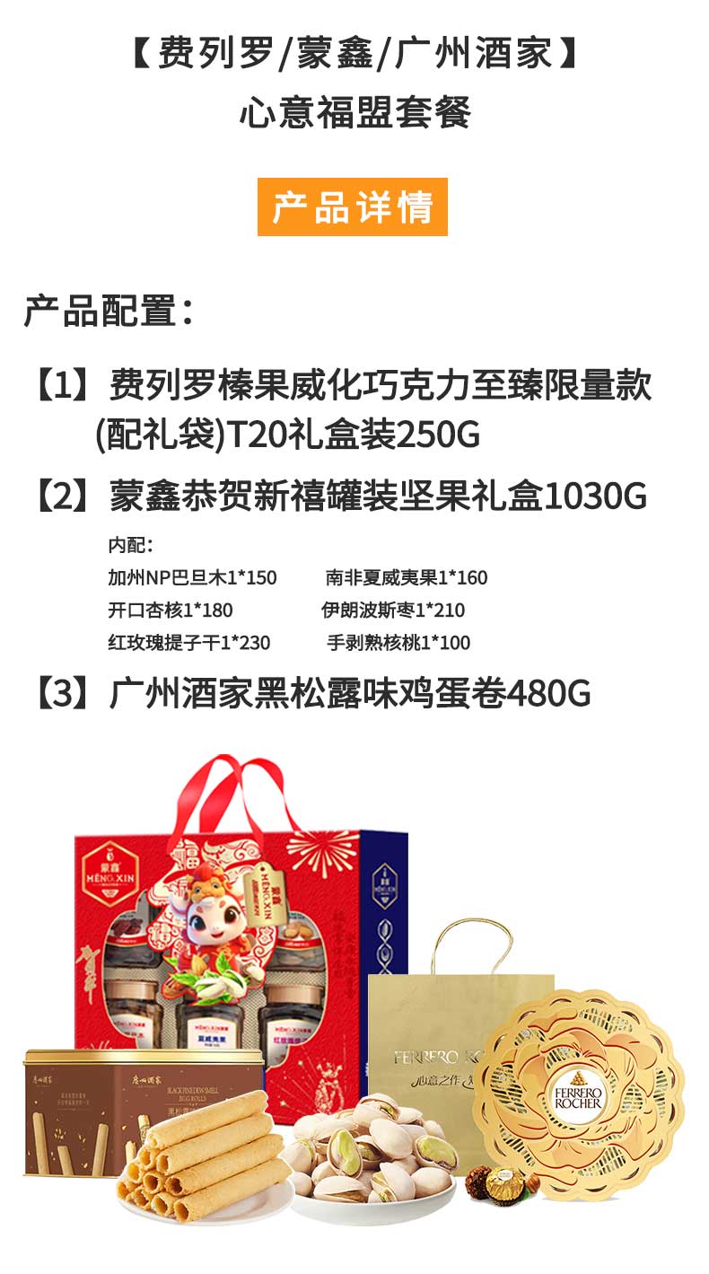 费列罗/蒙鑫/广州酒家-巧克力蛋卷坚果心意福盟组合1760g