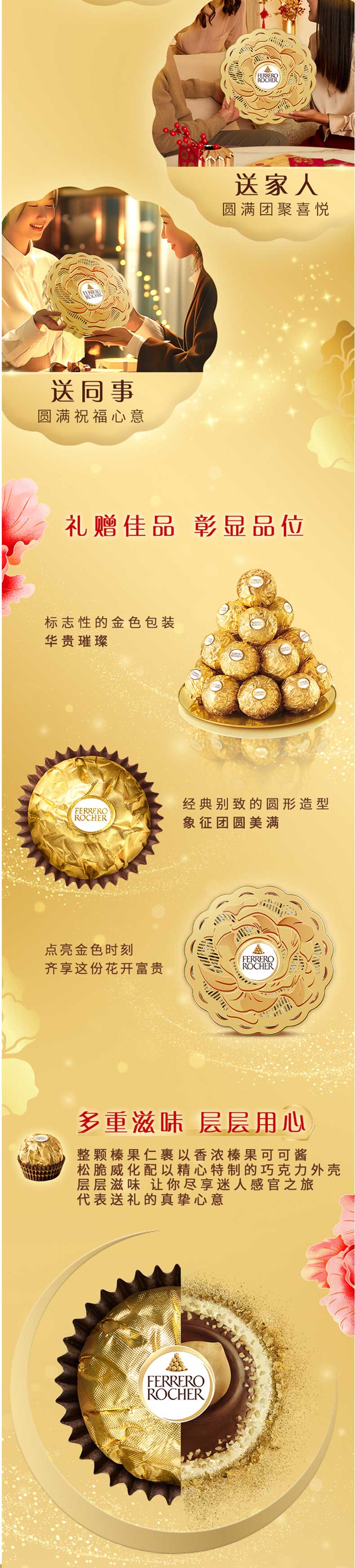 1.费列罗榛果威化巧克力至臻限量款(配礼袋)T20礼盒装250g