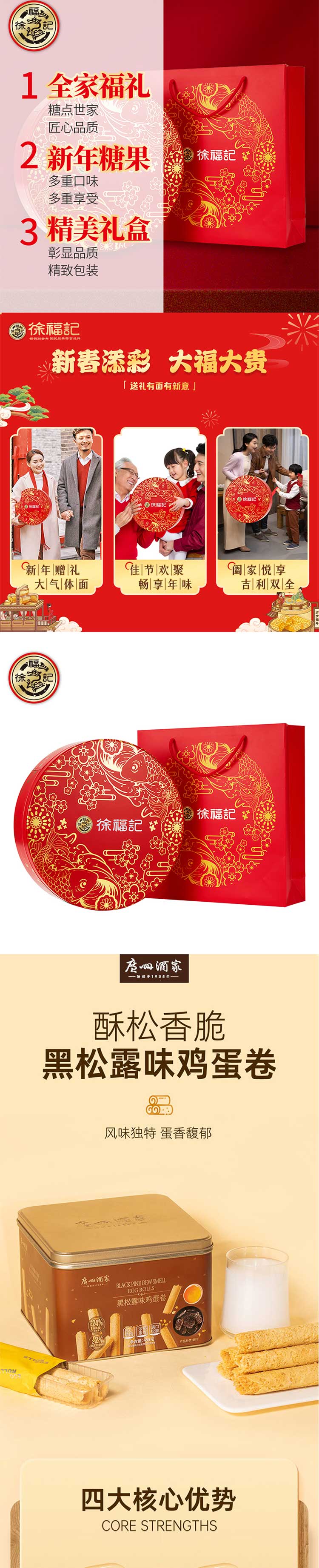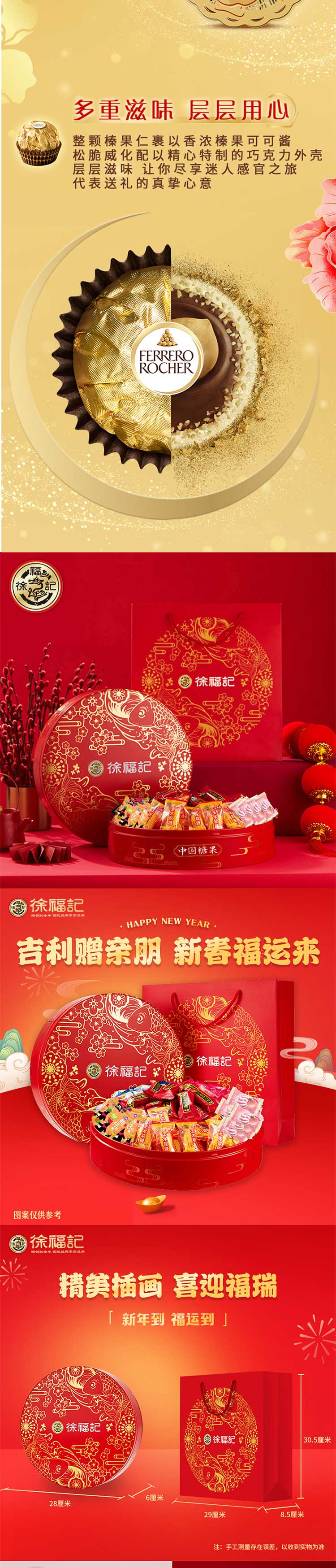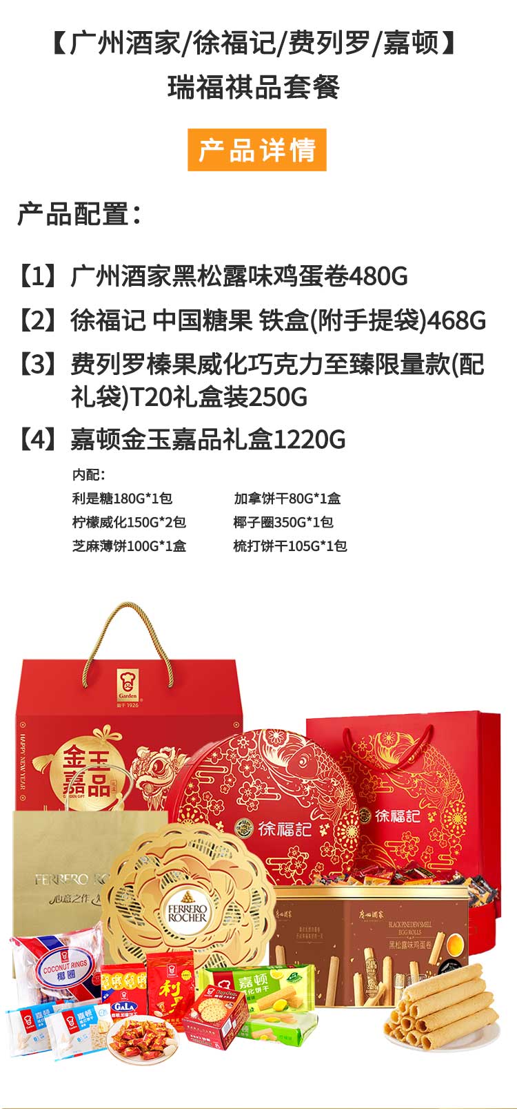 广州酒家/徐福记/费列罗/嘉顿-蛋卷糖果巧克力饼干瑞福祺品组合