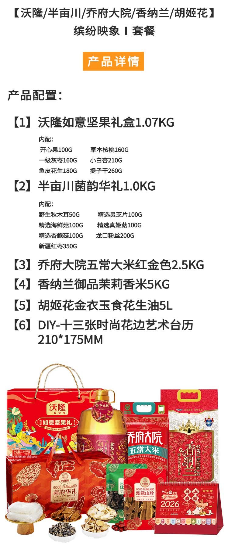 沃隆/半亩川/乔府大院/香纳兰/胡姬花-米油干货坚果缤纷映象Ⅰ组合