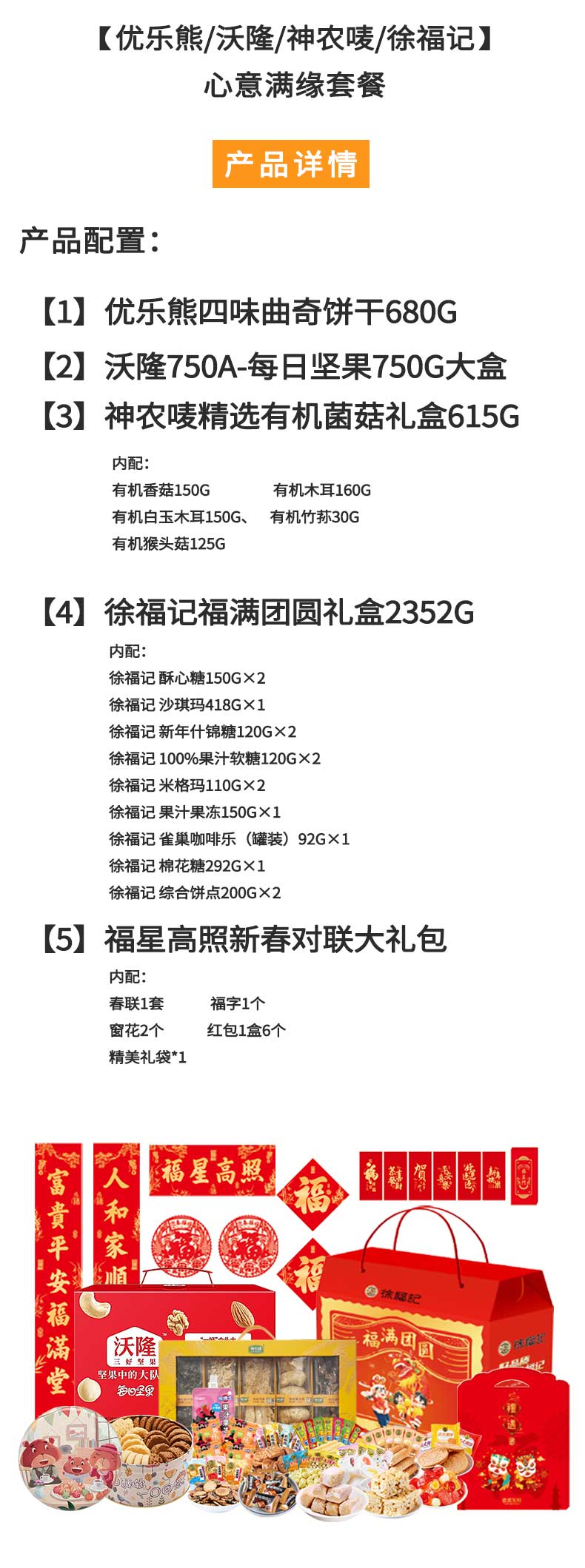 优乐熊/沃隆/神农唛/徐福记-曲奇坚果干货零食心意满缘组合4397g